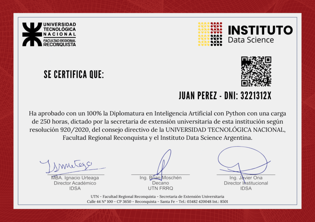 La calidad académica de nuestros cursos y diplomaturas ha sido avalada por la Resolución Nro. 290/20 de la Universidad Tecnológica Nacional sede Reconquista.